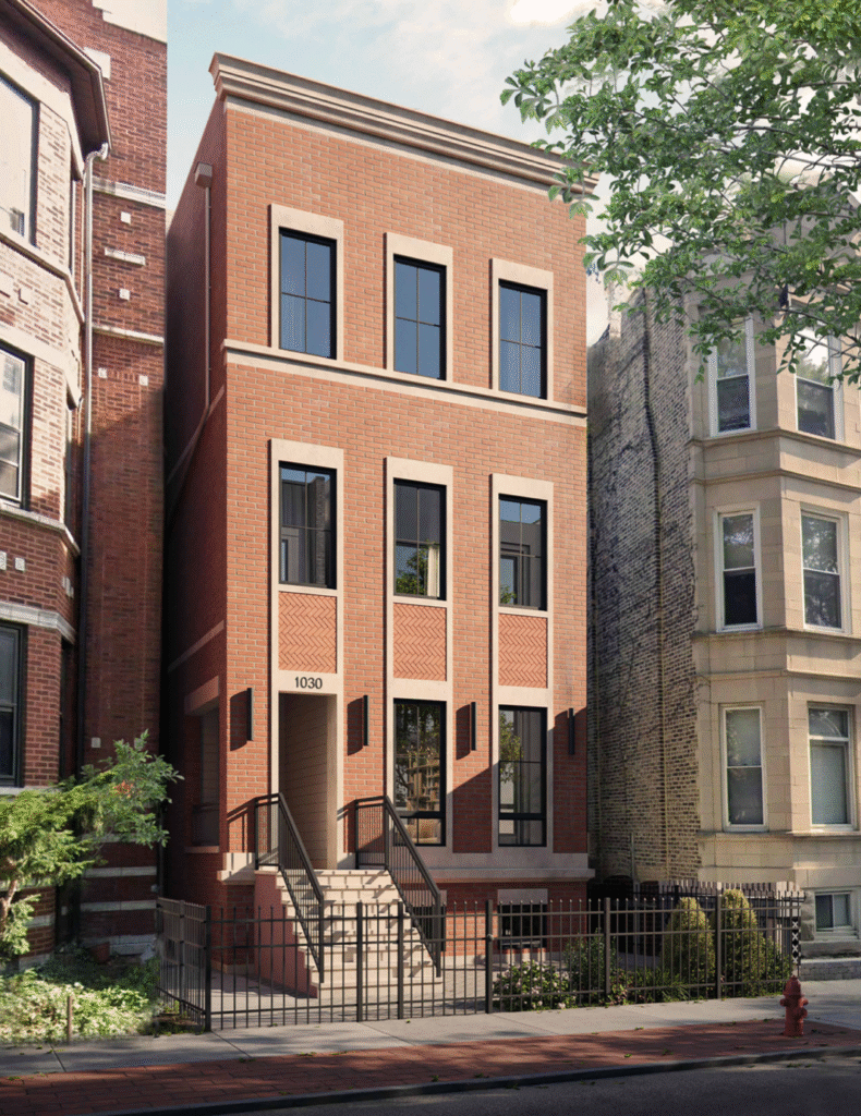 There is a proposal for a zoning change from RS-3 to RT-4 for 1030 W Oakdale, to construct a 3-story, 3-unit building with two dwelling units in the front and one Additional Dwelling Unit above the garage in the rear. This building would include two parking spaces. See the full plans attached below.